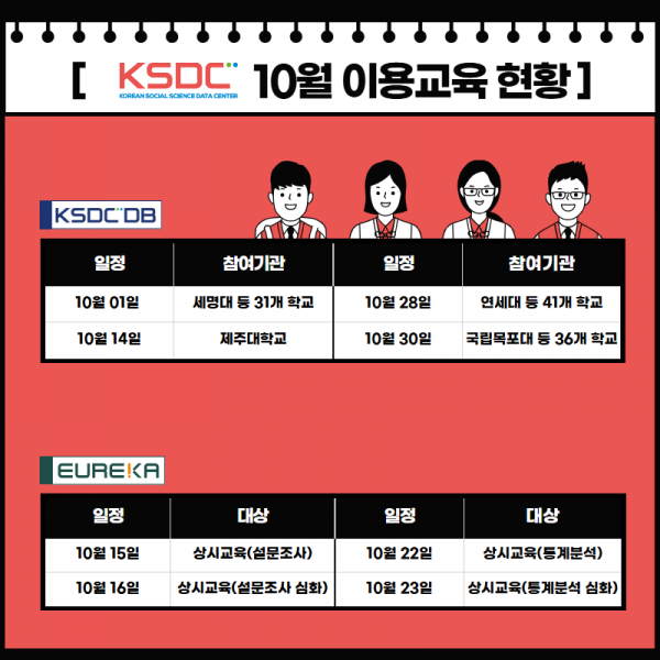 2025년 10월에 진행한 'KSDC DB'와 '유레카 통계와 분석'의 교육 현황을 알려드립니다.